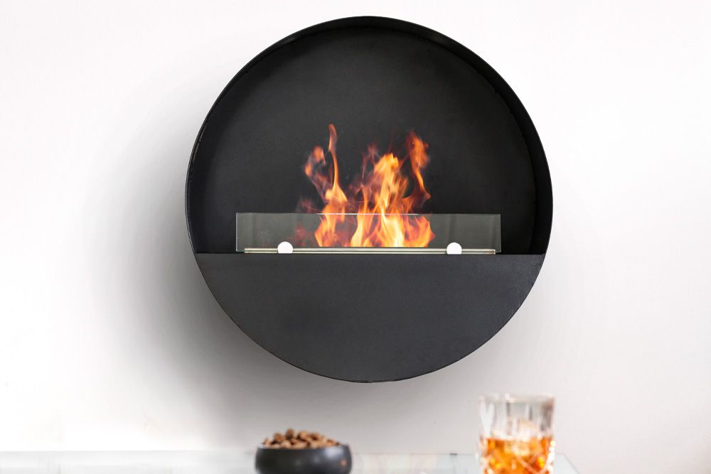 Biopejsen fra Tisvilde er fremstillet i sortlakeret stål og skal blot monteres på en brandsikker væg med de medfølgende skruer.
