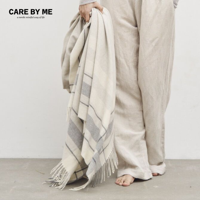 Klassisk i sit design med sit ternede mønster og tykke frynser i en meleret grå tone.