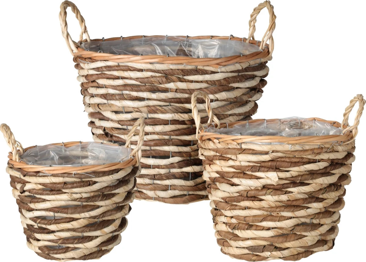 Dette sæt af tre flettede kurve i majs- og bananblade kombinerer funktionalitet med et smukt, rustikt udtryk. De tre forskellige størrelser gør dem ideelle til opbevaring af alt fra tæpper og magasiner til frugt og accessories. Håndtagene gør dem lette at flytte rundt, og det naturlige materiale tilfører varme og charme til enhver indretning. Perfekte til hjemmet, kontoret eller butiksindretning.