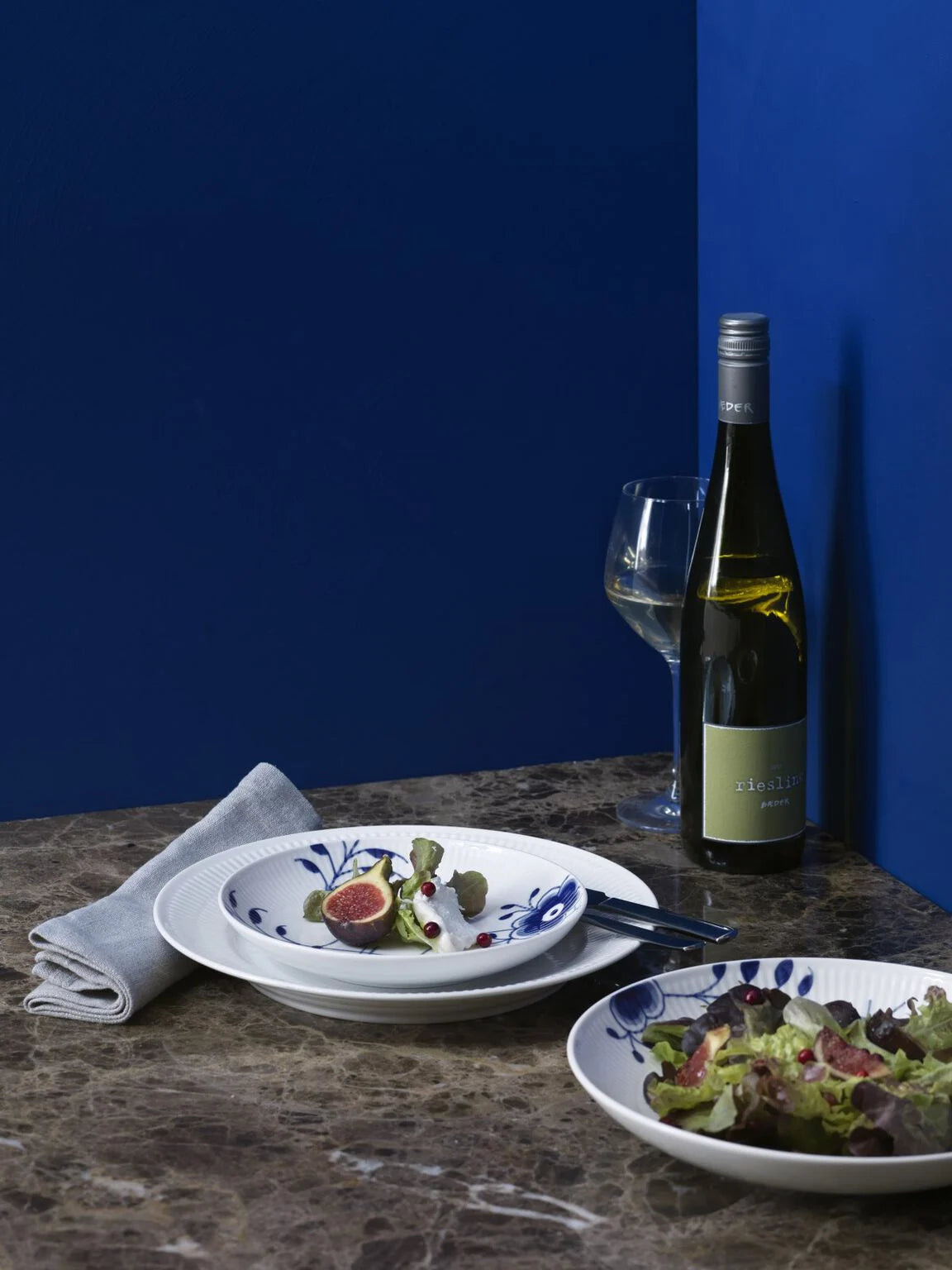 De iøjnefaldende, håndmalede elementer på denne Blå Mega Riflet tallerken på 25 cm følger den let buede kant foruden en enkelt blomst, der bryder symmetrien og skaber et overraskende udtryk. Tallerkenen er ideel som middagstallerken eller en stor frokosttallerken. Blå Mega Riflet er på en gang velkendt og forfriskende. Stellet er født af en modig nyfortolkning af det ikoniske Musselmalet Riflet og fortryller med sine grafiske og forstørrede sektioner af det musselmalede mønster. Siden Blå Mega Riflet blev designet i 2000 er stellet vokset sig til en ny klassiker inden for dansk design, og det iøjnefaldende stel er smukt i sig selv og i kombination med andre Royal Copenhagen stel.